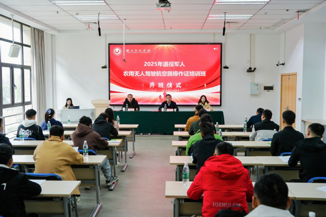 丁方对参加本次培训的退役军人学员表示热烈欢迎。他表示,学校始终高度重视退役军人职业技能培训工作,依托百年商科办学底蕴和“新财经”改革优势,积极构建“理论+模拟+实操”全流程教学模式。他强调,本次培训紧扣湖北省农业规模化、机械化发展需求,聚焦农用无人机操作技能与行业应用,为学员量身定制科学规范的课程体系,力求学以致用、务求实效。
