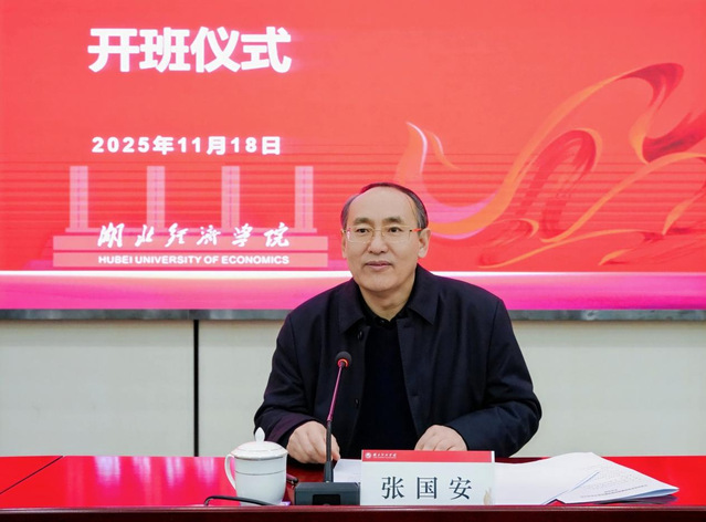 张国安代表学校对出席仪式的领导、学员表示热烈欢迎,并介绍了学校的办学历史、特色、现状及目标。他指出,深刻领悟党的二十届四中全会精神,将全会成果转化为提升财政干部队伍水平的动能,服务支点建设大局,是当前和今后一个时期内的重大政治任务。他希望各位学员将学习成果切实运用到工作中去,为湖北财政工作构建全方位、全过程、全覆盖的绩效管理体系添砖加瓦。